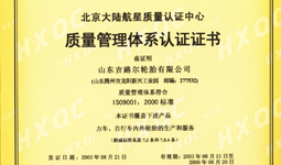 通过ISO9001国际质量管理体系认证,吉路尔公司是山东地区首批通过ISO9001认证的企业。